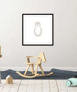 Hexoa Décoration Murale Enfant Affiche Sous Cadre Bois Enfant Pingouin Story 80x80cm
