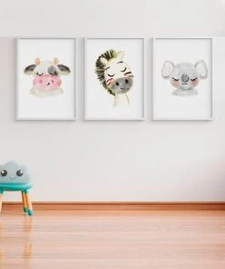 Crochetts Décoration Murale Enfant Pack Encadré Bois Blanc Impression Vache 43X33 Cm
