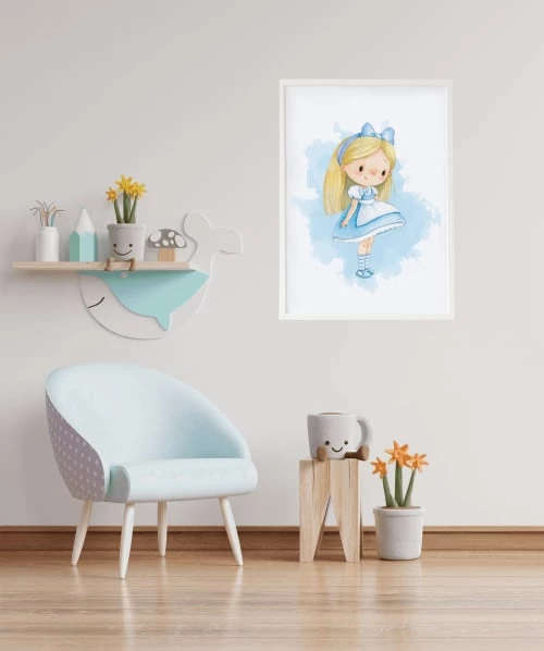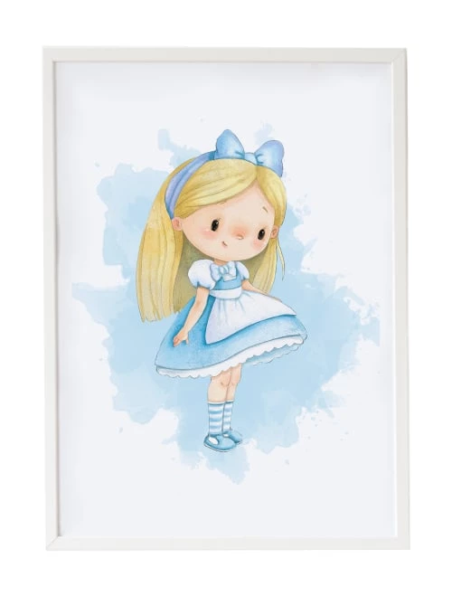 Crochetts Décoration Murale Enfant Impression De Alice Encadrée En Bois Blanc 43X33 Cm