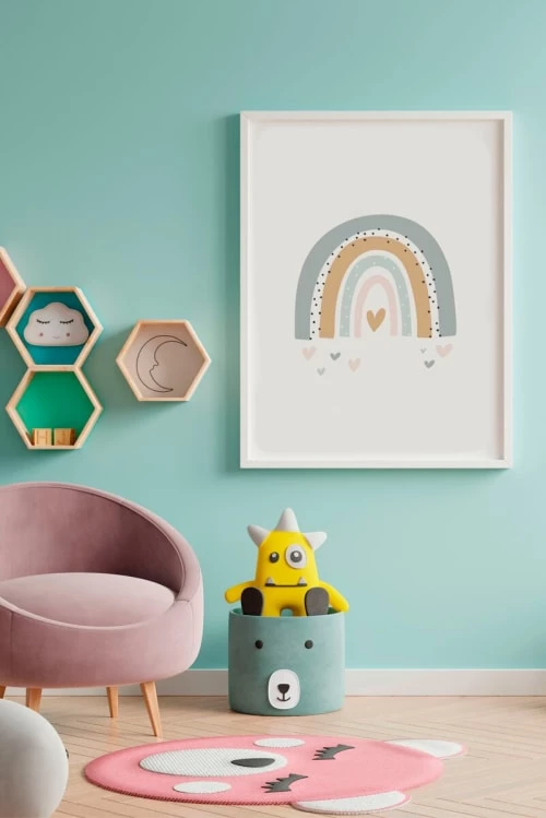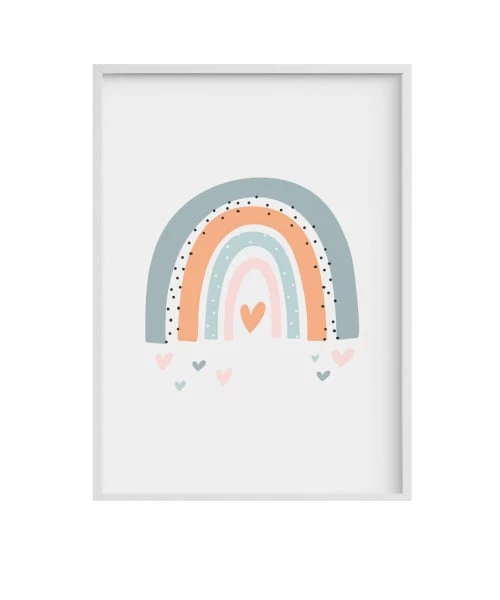 Crochetts Décoration Murale Enfant Impression De Arc-en-ciel Gris Encadrée En Bois Blanc 43X33 Cm