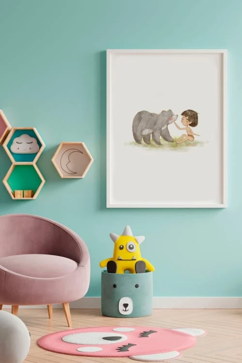 Crochetts Décoration Murale Enfant Impression Jungle Book Encadrée En Bois Blanc 43X33 Cm
