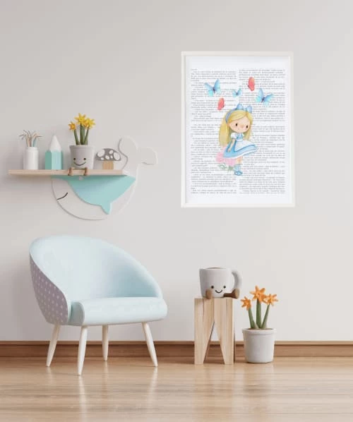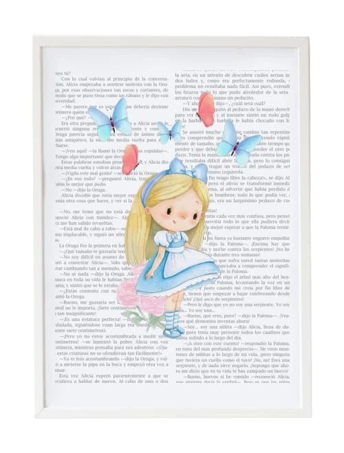Crochetts Décoration Murale Enfant Impression L’histoire D’Alice Encadrée En Bois Blanc 43X33 Cm