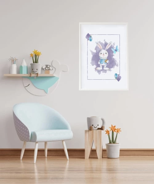 Crochetts Décoration Murale Enfant Impression Lapin Alice Encadrée En Bois Blanc 43X33 Cm
