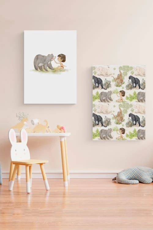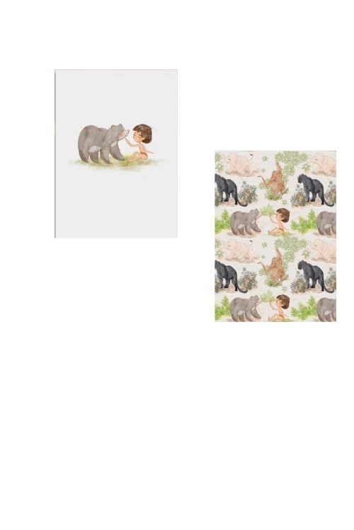 Crochetts Décoration Murale Enfant Pack Encadré Bois Blanc Impression Jungle 43X33 Cm