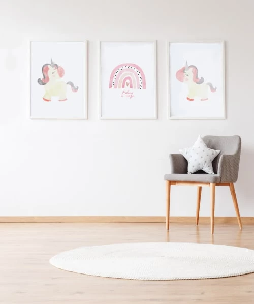 Crochetts Décoration Murale Enfant Pack Encadré Bois Blanc Impression Licornes 43X33 Cm