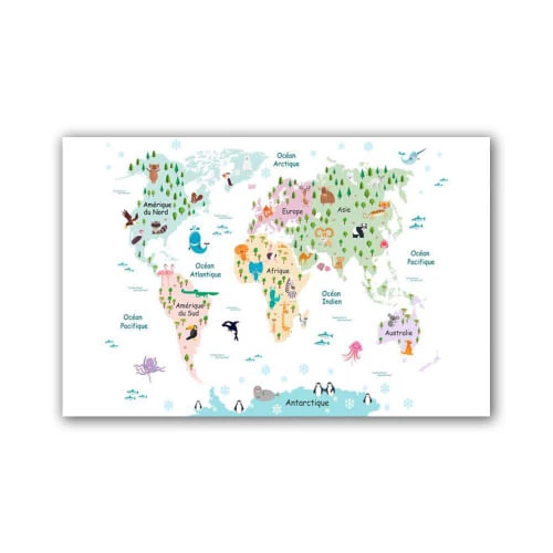 Crochetts Décoration Murale Enfant Pack Encadré Bois Blanc Impression Le Animaux Et Zèbre 43X33 Cm