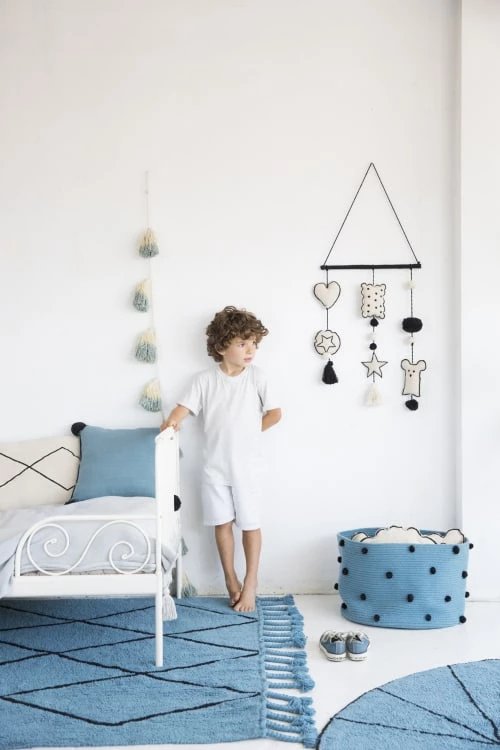 Maisons Du Monde Décoration Murale Enfant Rangement Mural En Coton Blanc, Moutarde Et Noir 23×82