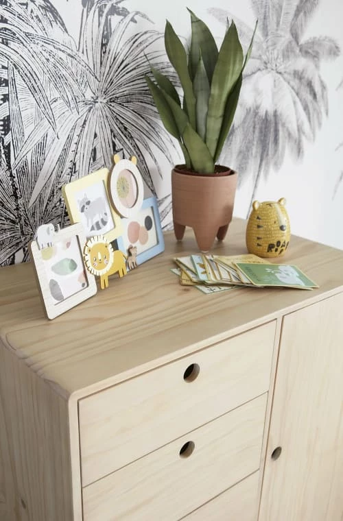 Maisons Du Monde Décoration Murale Enfant Rangement Mural En Coton Blanc, Moutarde Et Noir 23×82