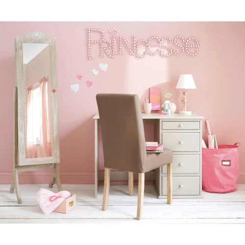 Avec ces perles de strass, cette déco murale en métal rose 35×118 PRINCESSE fera briller la chambre de votre petite princesse. Réalisé en métal, ce mot décoratif trouvera sa place au mur ou sur la porte de sa chambre. Romantique à souhait, cette déco murale rose apportera une note de douceur et de fantaisie.