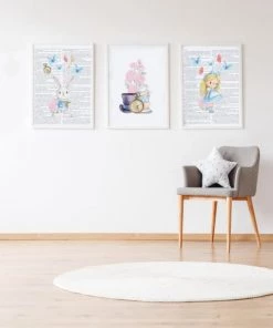 Crochetts Décoration Murale Enfant Pack Encadré Bois Blanc Impression Le Lapin Et Fleurs 43X33 Cm