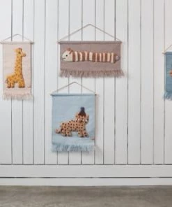 OYOY Living Design Décoration Murale Enfant Tapis Mural Girafe Rose 95% Laine 5% Coton 70x32cm