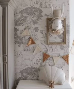 Sevira Kids Décoration Murale Enfant Trophée Mural Cigogne En Lin Blanc